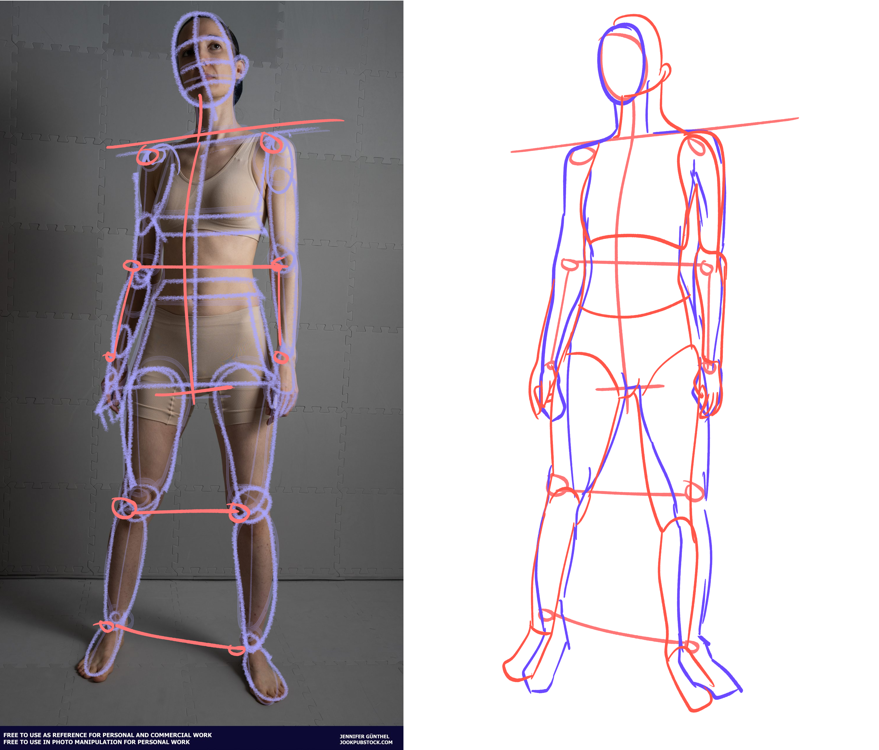 5번째 시도부터는 모든 인체의 랜드마크를 그리기란 어려움이 있으니 어깨 위치만 잡고 나머지를 그려내고 접힌 팔꿈치, 무릎, 발목 등도 대충 표현해 보기 시작했는데, 이게 생각보다 내게는 수월한 방식이었다. 어디서부터 꺾이는지 보이니 다른 곳들을 관찰하고 위치를 잡는 게 훨씬 편했던 것이다. 그래서 수정 선을 그어둔 것을 보면 점점 그 횟수가 적어지고 있다.