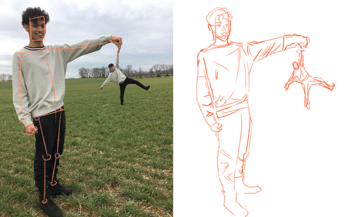 그래도 저 정도는 아주 가려진 것도 아니라서 처음 분석 이후엔 할만 했다. 또, 미니미니한 인간을 그려보고 싶어서 이 사진을 선택한 것도 있는데 생각보다 굉장히 빠르고 간단하게 그릴 수 있어서 놀라움을 느꼈다. 생각보다... 적당히만 묘사하면 되잖아?