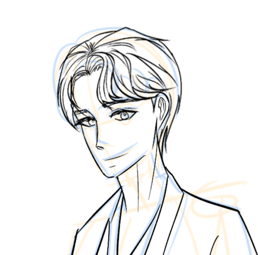 여유롭게 타인을 내려다보는 듯한 느낌을 주고 싶어 측면으로 서 있는 3번을 자세에 가장 많이 참고했고, 의상은 그리다 보니 개량한복 정장이라는 것을 깨닫고 셔츠 느낌이 많이 나면서 단정하게 보일 수 있는 1번과 6번을 섞었다. 머리 스타일 같은 경우는 이 중에서 하나를 골라 써먹어보려 했으나 '성현제'라는 캐릭터에 어울릴 것 같은 모양이 없어 3번과 6번의 머릿결과 덩어리를 참고하되 웹툰 '성현제'의 머리카락을 곳곳에서 참고했다.