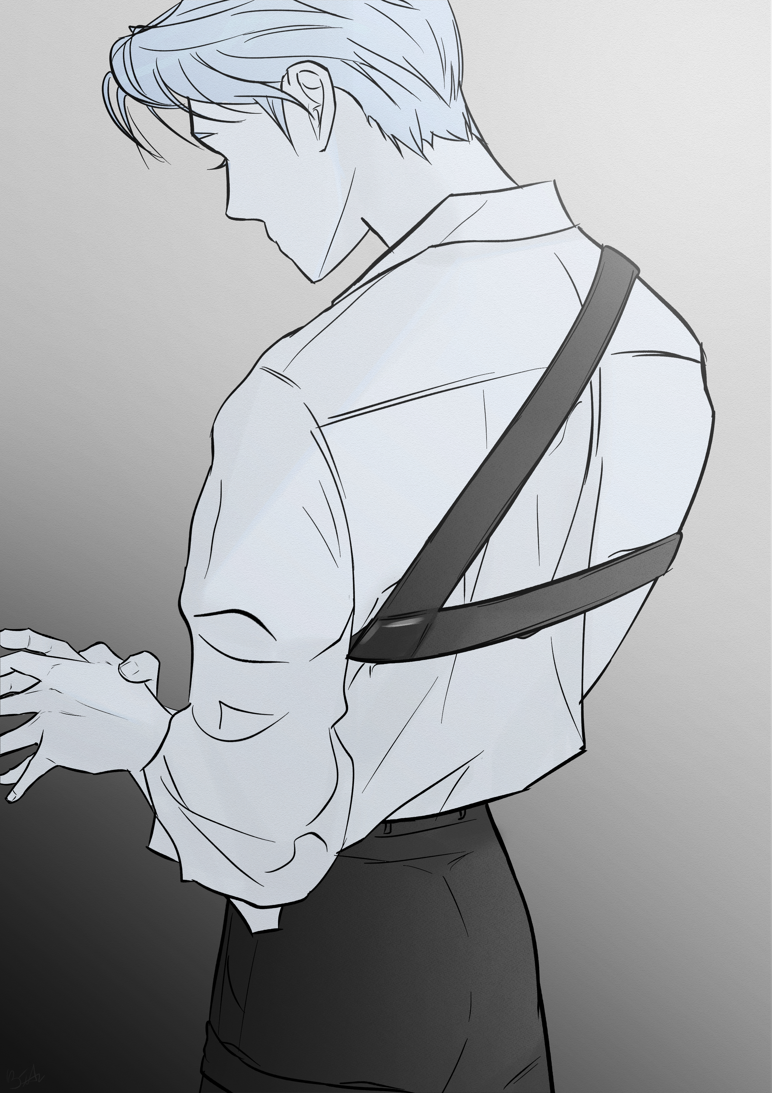 2. 옷주름 모양을 모르겠어서 하네스 옷주름, 하네스 입은 사람, 하네스 뒤태, 하네스 셔츠 등등 여러 키워드로 자료를 찾아봤다. 완벽하게 마음에 드는 자료를 찾아내지는 못했지만 적어도 천 위에 끈이나 밴드가 압박을 하고 있다면 그 주변으로 가로형 옷주름이 생기는 걸 찾을 수 있었다. 아직은 대충 그런 모양이구나 정도를 파악한 수준이라 예쁜 형태를 그려내지는 못했지만 차근차근 나아질 것이다.