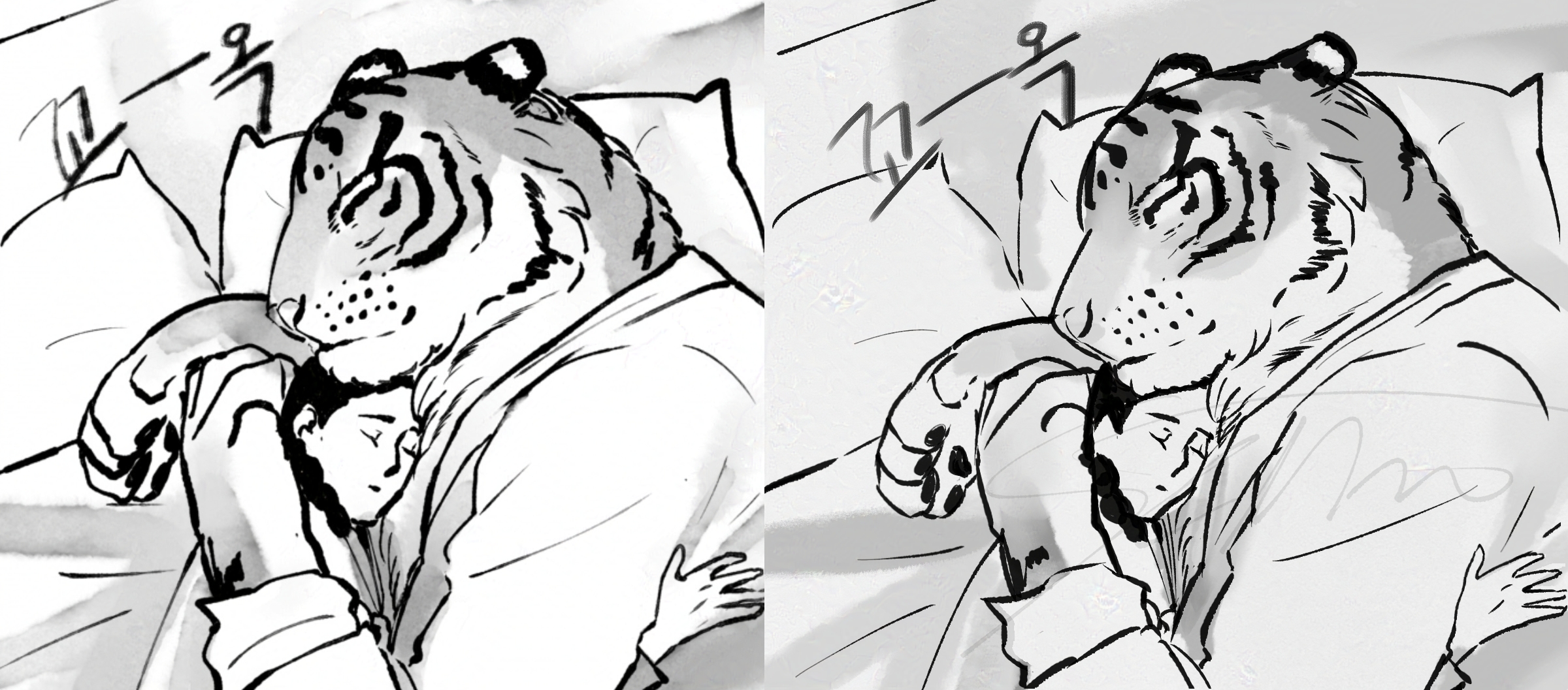 이때부터 내가 자체 제작 굿즈에 대한 열망을 품고 있었다. 내가 그리고 싶은 캐릭터는『내가 키운 S급들』의 마수 '피스(화염뿔사자)'였으니 비슷한 고양잇과인 호랑이 '지범'으로 동물 그리기 연습을 시도했다.