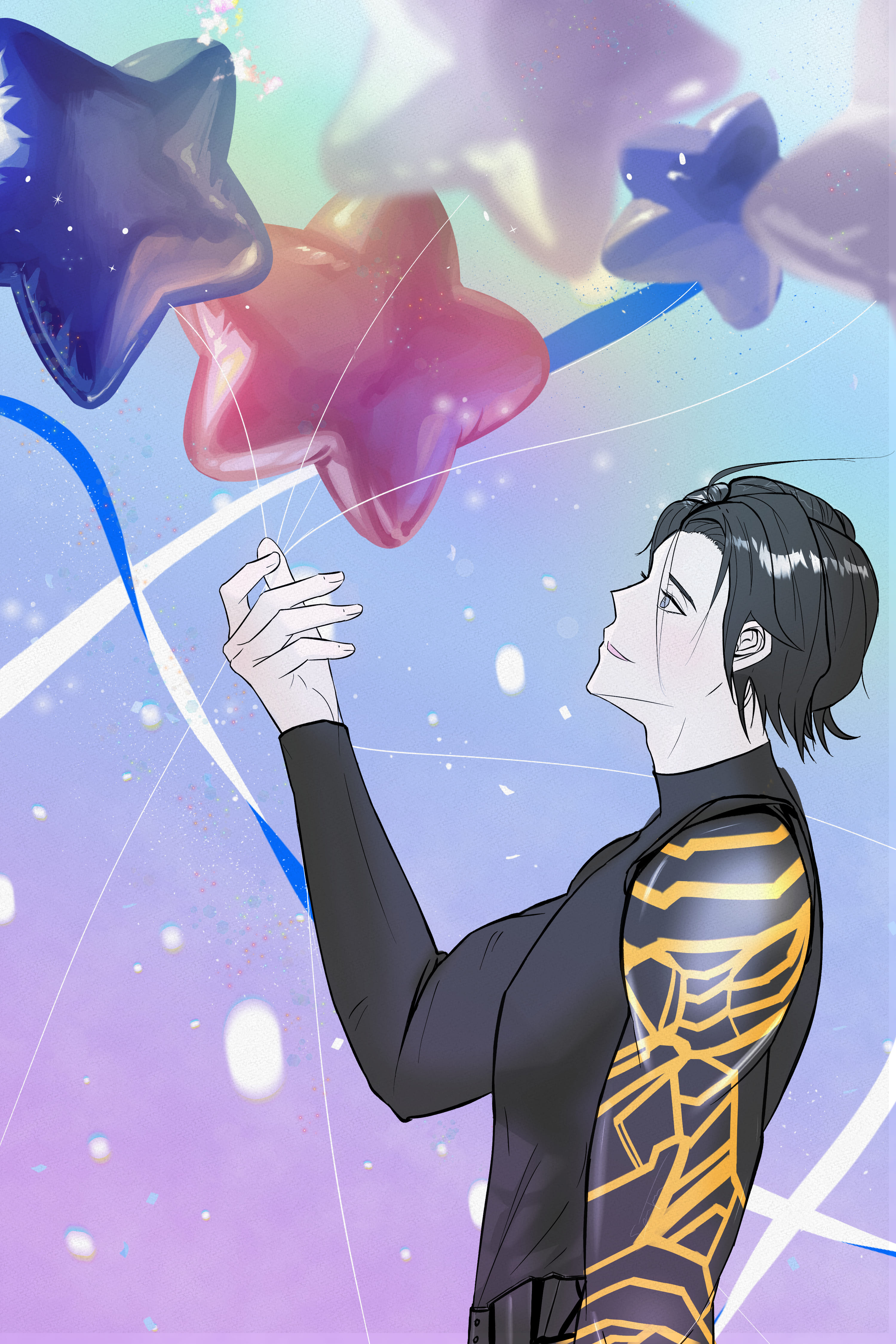 여기서 풍선은 소재를 사용했다. 손도 처음에는 소재를 사용했다가 내 손을 합성해서 그렸다. 이건『나 혼자만 레벨업』'성진우' 모작을 해보고 이 구도라면 지금 내 기억의 잔상으로 창작 연습이 가능할 것 같다! 그런 직감이 들었다. 그래서 마블의 윈터 솔져 '버키 반즈' 생일 카페 홍보가 올라오고 있기에 한번 그려볼까? 바로 도전했다.